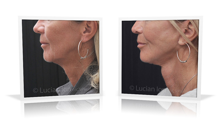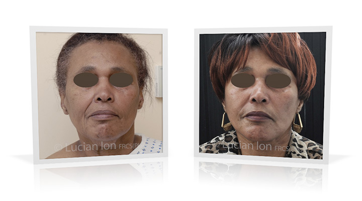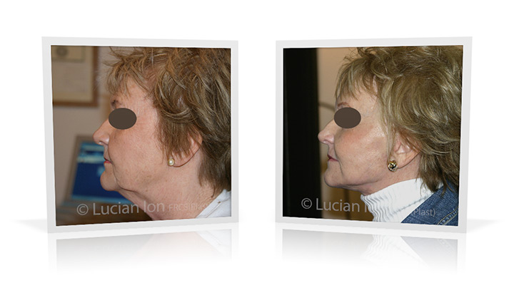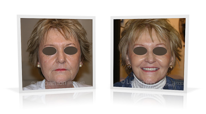 | Full facial rejuvenation, involving SMAS facelift and neck lift, forehead lift and fat transfer. The fat transfer contributes to a softer appearance of the facial features and reduces the impact of sun damage, and together with the facelift contributes to highlighting the cheekbone area. The neck contouring involves reduction of the fatty tissue under the skin and below the platysma muscles, reduction of the lower poles of the submandibular glands for enhanced jawline and neck contour, and corset platysmaplasty. by Lucian Ion (FRCS) | 21 |