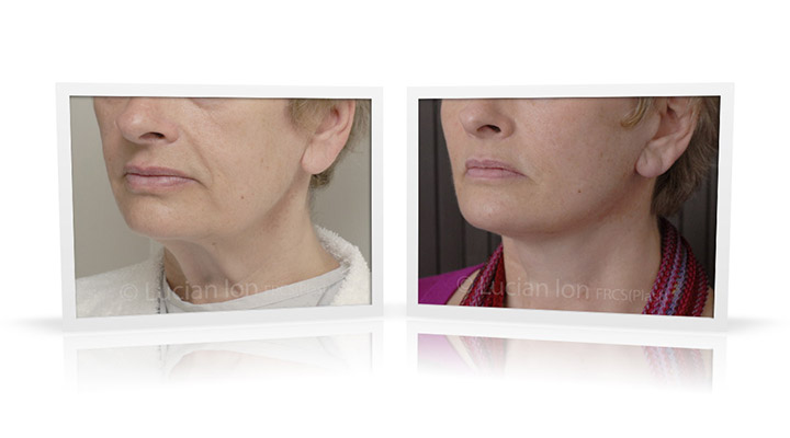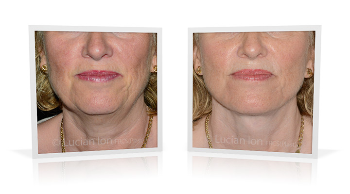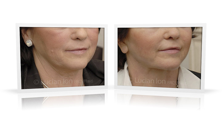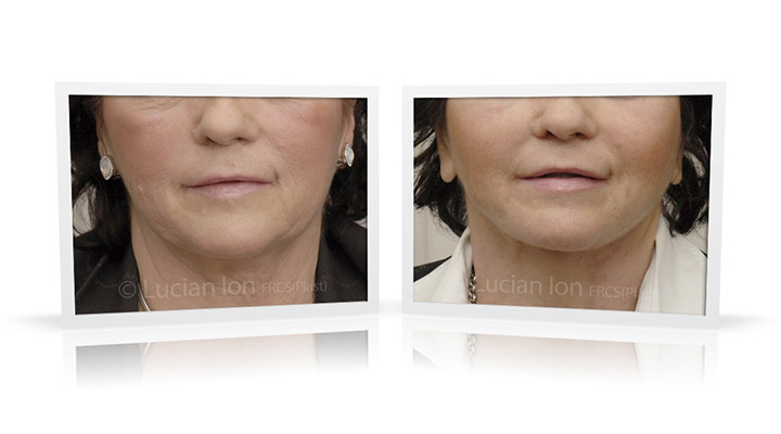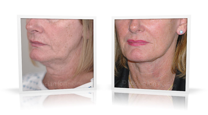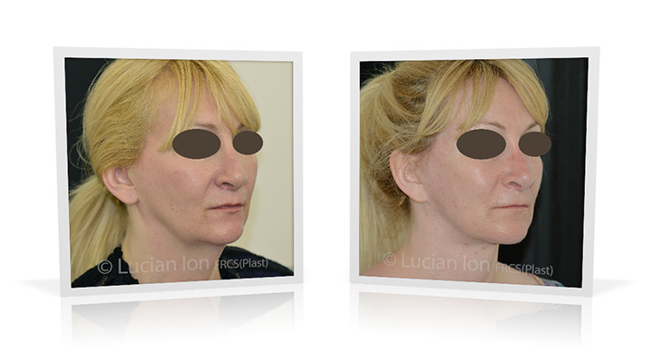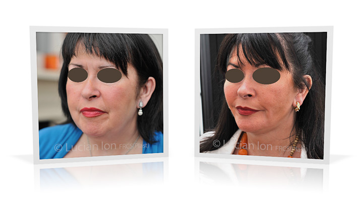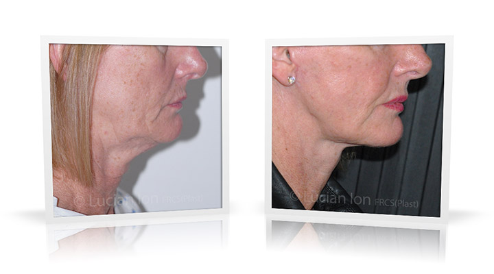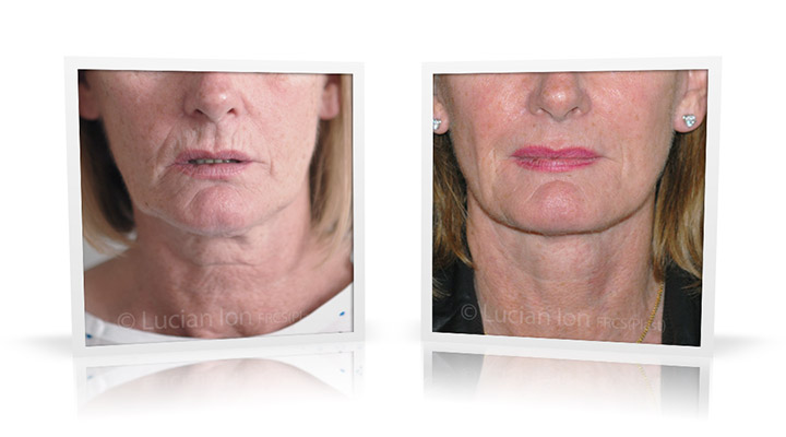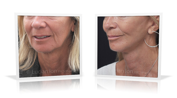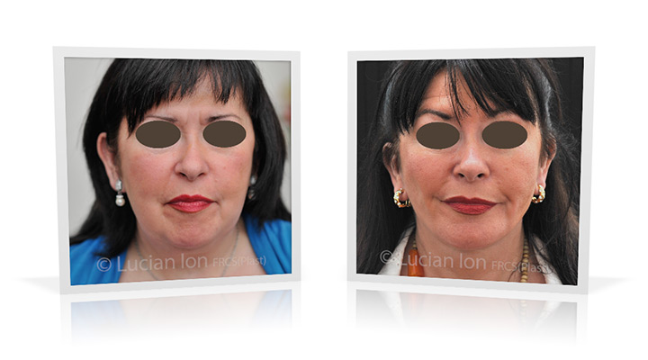 | Facial rejuvenation involving SMAS facelift and neck lift surgery to soften the facial contours and create a more defined jawline and neck contour. The mid face enhancement is achieved using fat transfer. by Lucian Ion (FRCS) | 54 |