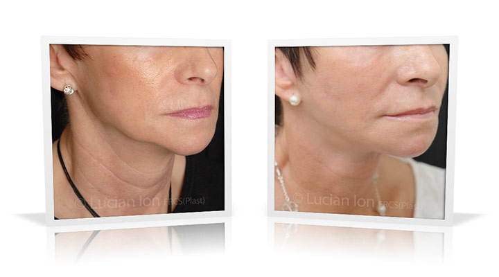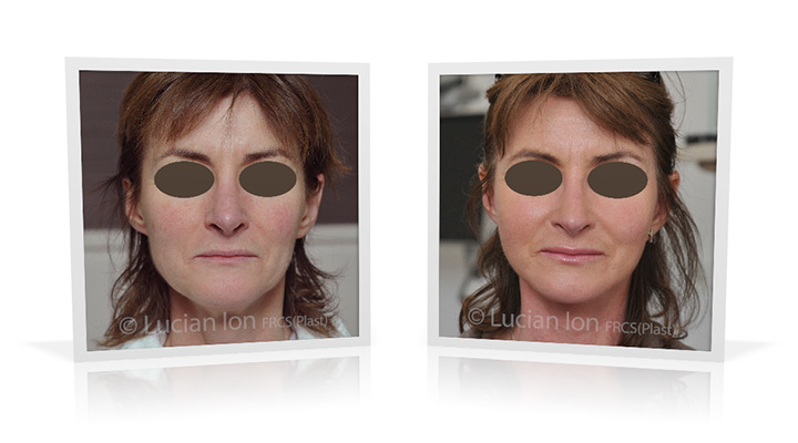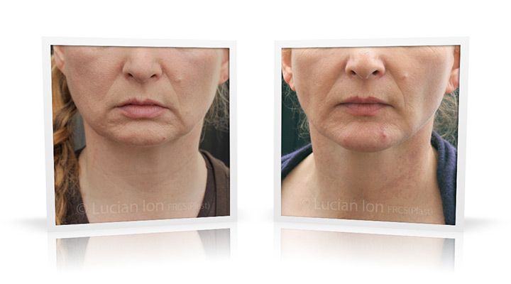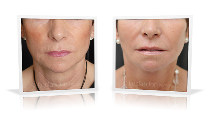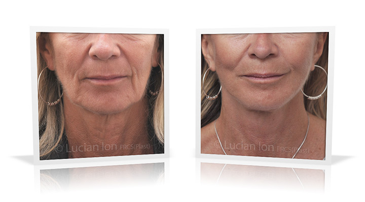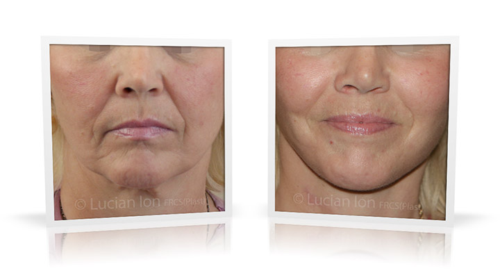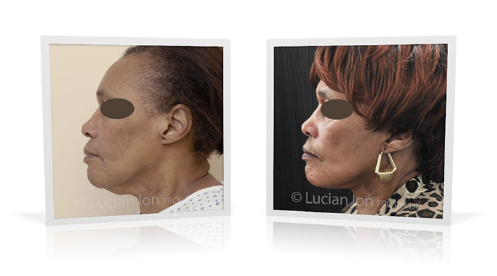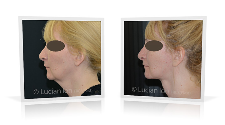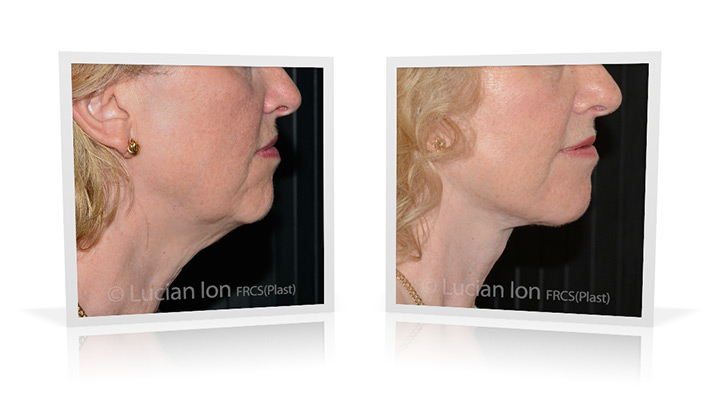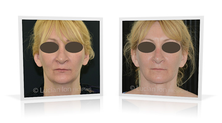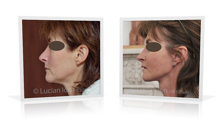 | Facial rejuvenation involving SMAS facelift and neck lift surgery to soften the facial contours and create a more defined jawline and neck contour. The mid face enhancement is achieved using fat transfer. by Lucian Ion (FRCS) | 54 |