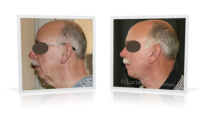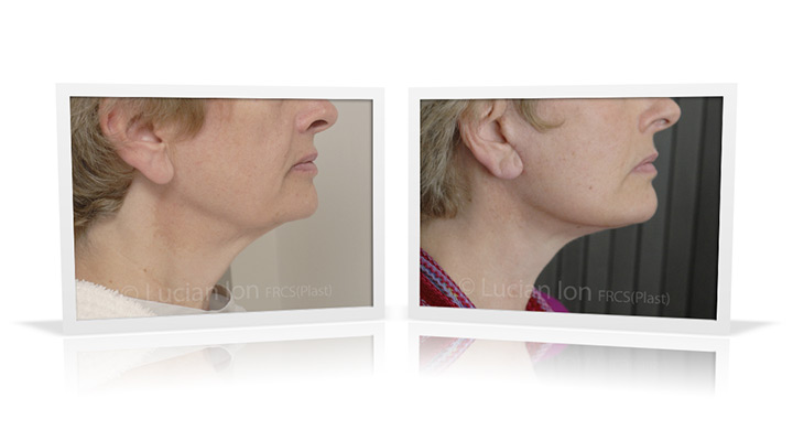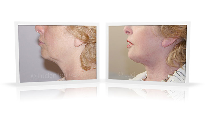 | 71 | Rejuvenation for the lower face and jaw line in a patient with relatively small chin. Combination of neck lift and chin implant, to contribute definition of the jawline, improvement in the neck line, and effective control of the neck girth. Platysmaplasty and reduction of the lower parts of the submandibular glands to emphasise the neck definition. by Lucian Ion (FRCS) |   |